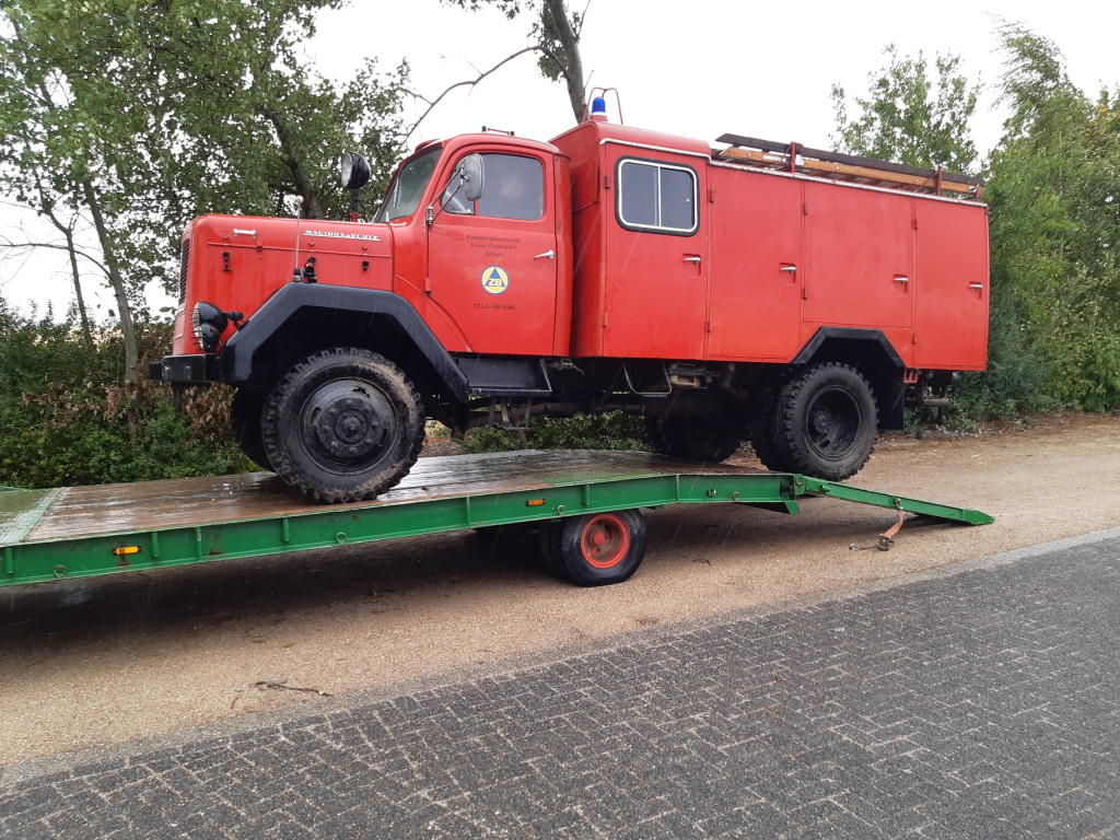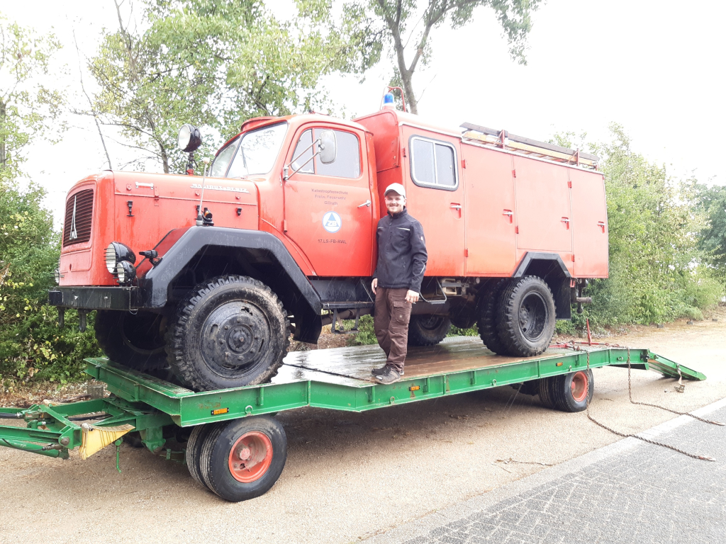 Am Anfang tut man sich schwer und sucht nach Besitzern solcher Fahrzeuge. Ich bekam einen Tipp dass in einer nahegelegenen Ortschaft auch ein Oldtimer in einer Sammlung von Traktoren steht. Auf Umwegen kam ich schließlich an die Telefonnummer des Besitzers und nach einem netten Gespräch wurde ein Besichtigungstermin vereinbart. Dort stand er, der Magirus Mercur 125 TLF 16 ex. Katastrophenschutz (LSHD Luftschutzhilfsdienst) Baujahr 1963, wohlbehütet in einer Halle mit historischen Gegenstanden aus Bauernhöfen, einem Traktor und diversen anderen Teilen. Der Besitzer hatte das Fahrzeug direkt von der Ortsfeuerwehr übernommen, er war selbst dort tätig und hat das Fahrzeug auch gefahren. Beladen noch wie zu Einsatzzeiten, einsatzbereit !